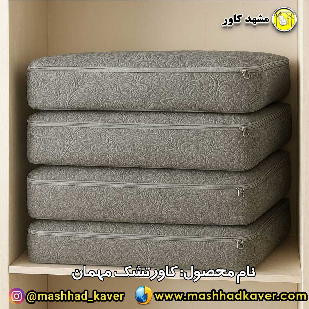 – کاور تشک  امروزه با توجه به  کوچک بودن فضا منازل برای جمع اوری پتو و بالشت ها و همچنین پوشاک بسیار کاربردی ومناسب میباشد. برای نظم دادن به کمد و  همچنین در مسافرت برای شما عزیزان.