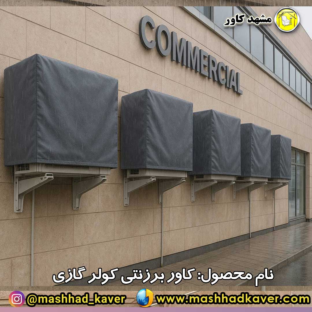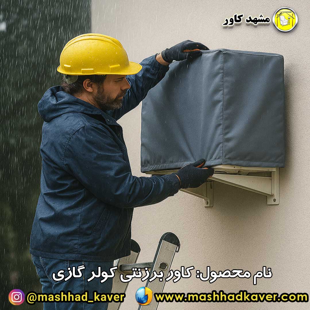 کاور کولر گازی برزنتی: ساختهشده از پارچه ضدآب و ضخیم، مقاوم در برابر شرایط سخت آبوهوایی و مناسب برای استفاده در تمام فصلها.